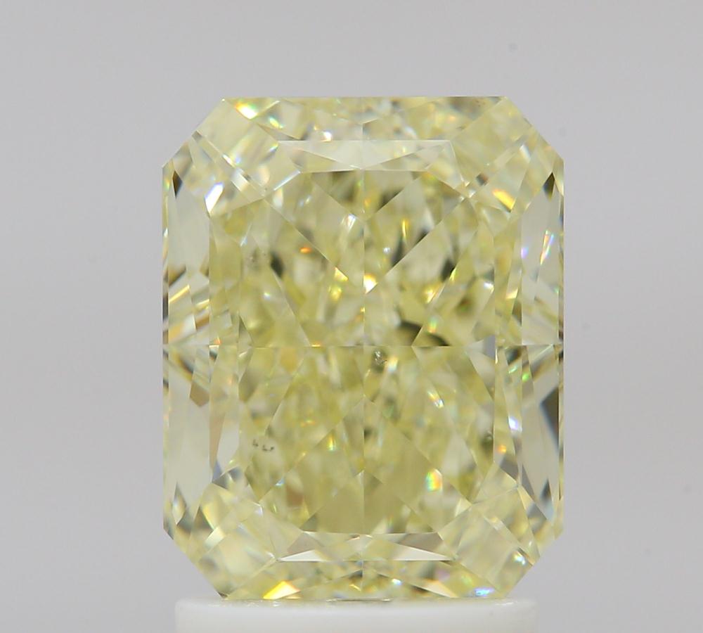 Weight: 2.53 Color: FANCY LIGHT YELLOW Shape: RADIANT Clarity: VS2 Symmetry: VG Polish: EX Measurement: 8.28 - 6.62 * 4.57 Depth%: 69.00 Table%: 64.00 Lab: GIA Ratio: 1.25 Status: AVAILABLE Black Inclusion: CENTER PINPOINT Fluorescence: NONE Location: IND Fancy Color: YELLOW Fancy Color Intensity: FANCY LIGHT