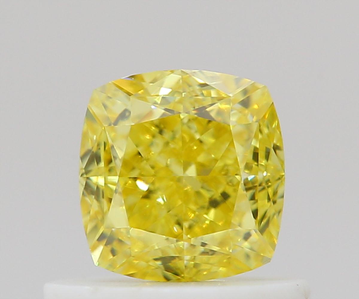 0.66 Carat CUSHION Fancy Vivid Yellow Diamond