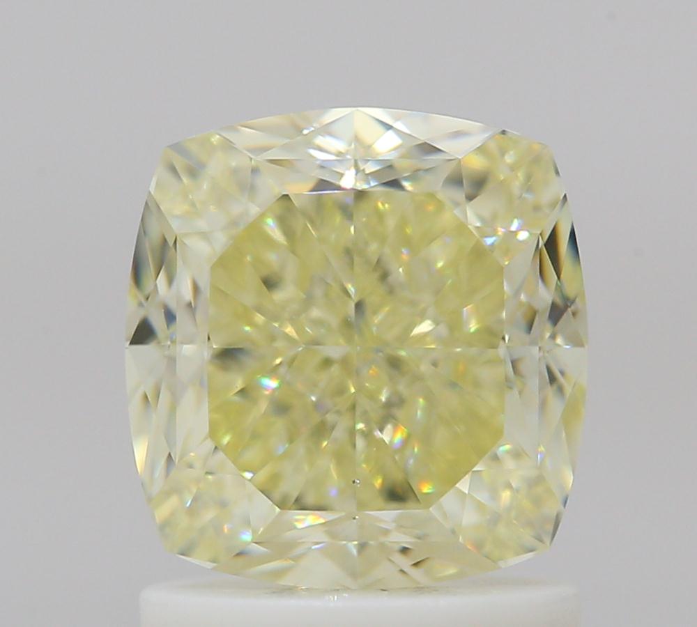 Weight: 1.68 Color: Y-Z Shape: CUSHION Clarity: VS2 Symmetry: VG Polish: EX Measurement: 6.54 - 6.29 * 4.32 Depth%: 68.60 Table%: 64.00 Lab: GIA Ratio: 1.04 Status: AVAILABLE Black Inclusion: SIDE PINPOINT Fluorescence: MEDIUM Location: IND