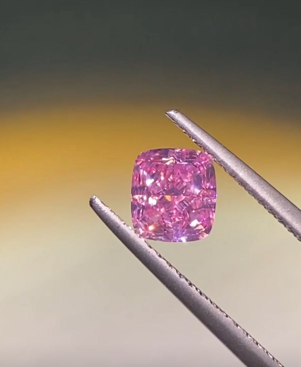 Weight: 1.11 Color: FANCY VIVID PURPLE-PINK Shape: CUSHION Clarity: VS1 Symmetry: GD Polish: EX Measurement: 5.89 - 5.34 * 3.64 Depth%: 68.10 Table%: 66.00 Lab: GIA Ratio: 1.1 Status: AVAILABLE Fluorescence: STRONG Location: HK Fancy Color: PURPLE-PINK Fancy Color Intensity: FANCY VIVID