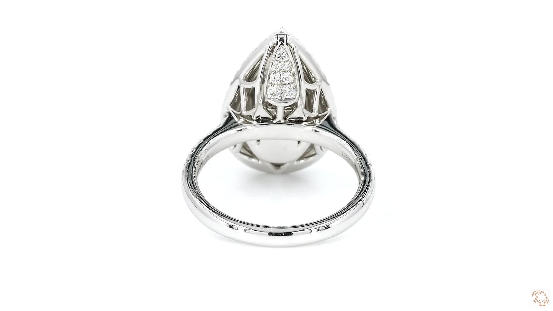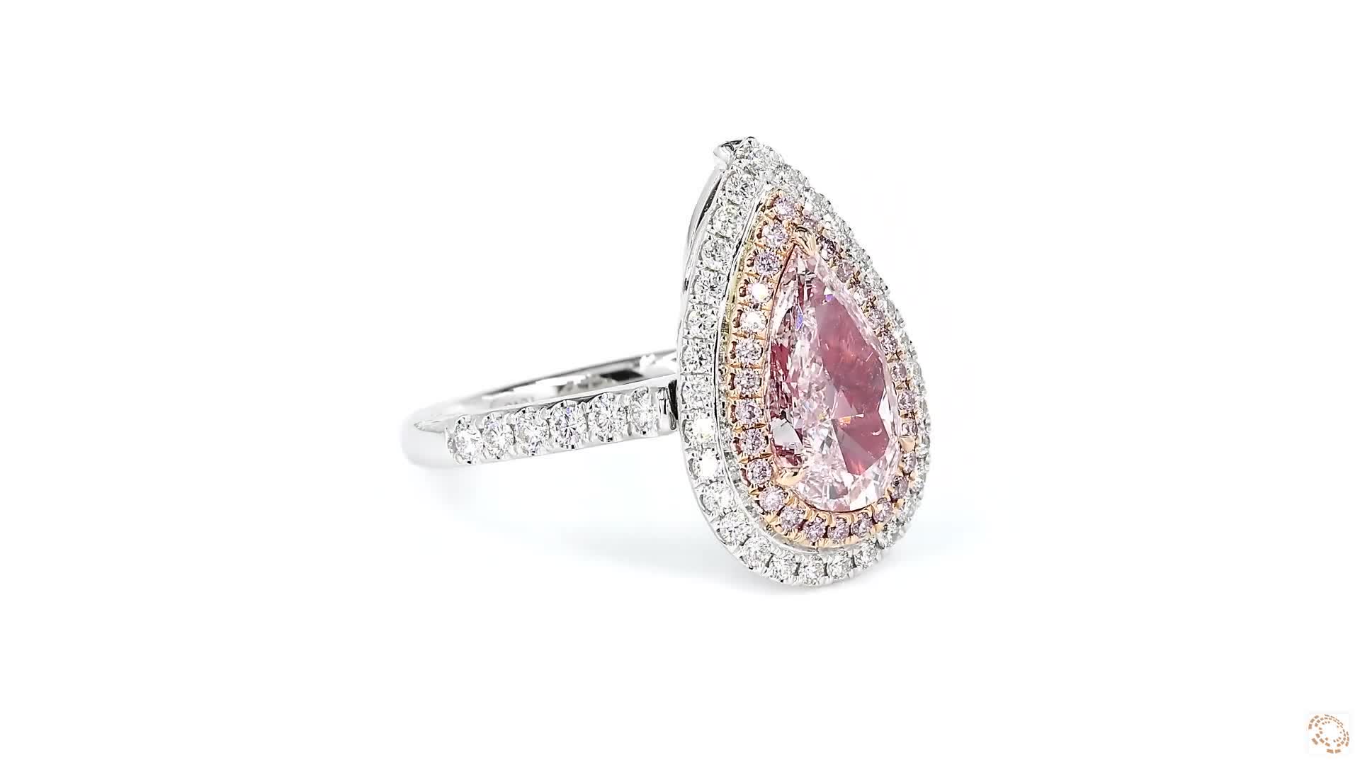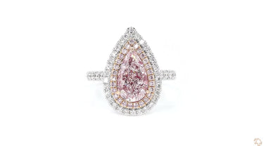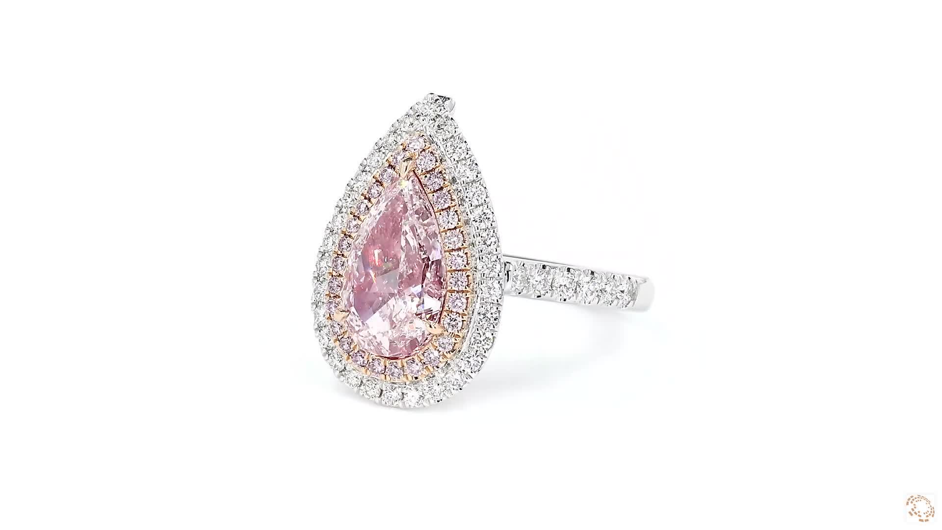 A captivating pink pear diamond, beautifully framed by two diamond halos