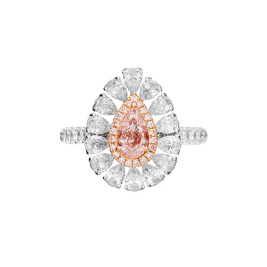 A beautiful pink pear diamond is framed by stunning white diamond petals