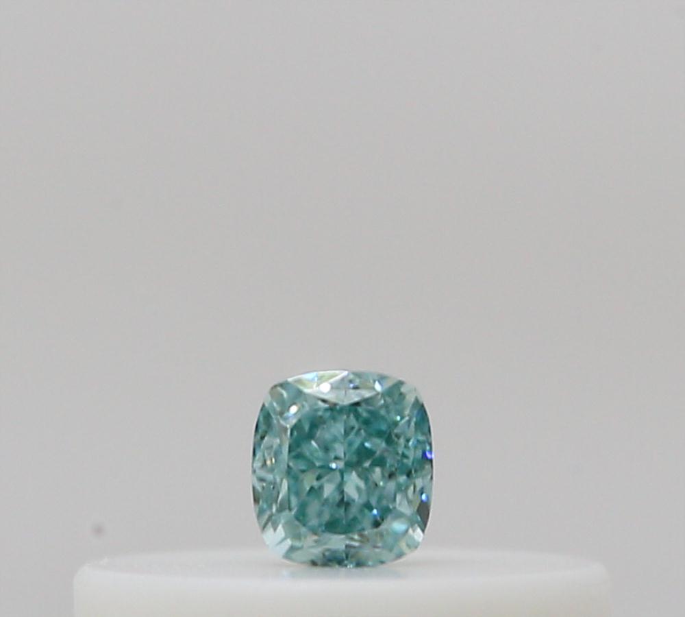 0.06 Carat CUSHION Fancy Intense Bluish Green Diamond