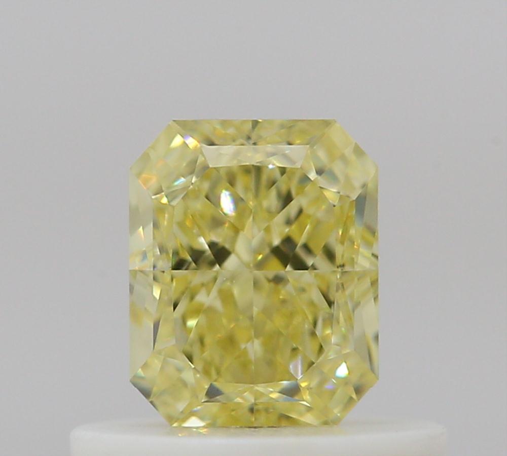 Weight: 0.53 Color: FANCY YELLOW Shape: RADIANT Clarity: VS2 Symmetry: VG Polish: EX Measurement: 4.89 - 3.96 * 2.74 Depth%: 69.20 Table%: 67.00 Lab: GIA Ratio: 1.23 Status: AVAILABLE Black Inclusion: NO BLACK Fluorescence: MEDIUM Location: IND Fancy Color: YELLOW Fancy Color Intensity: FANCY